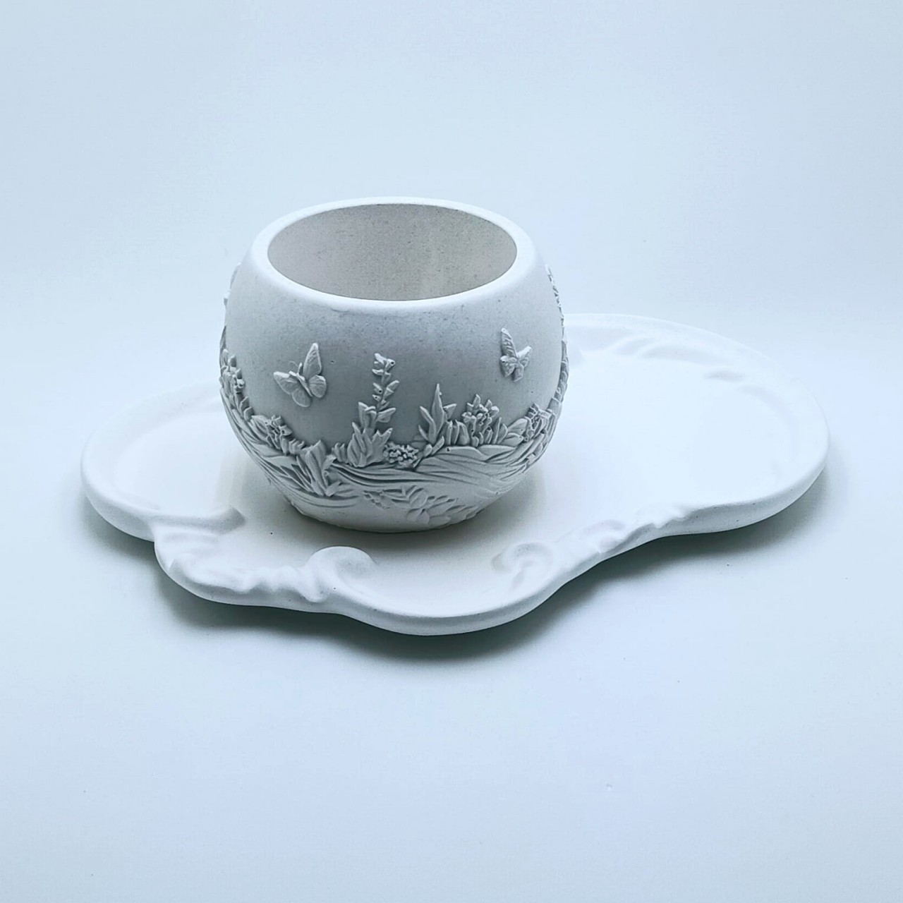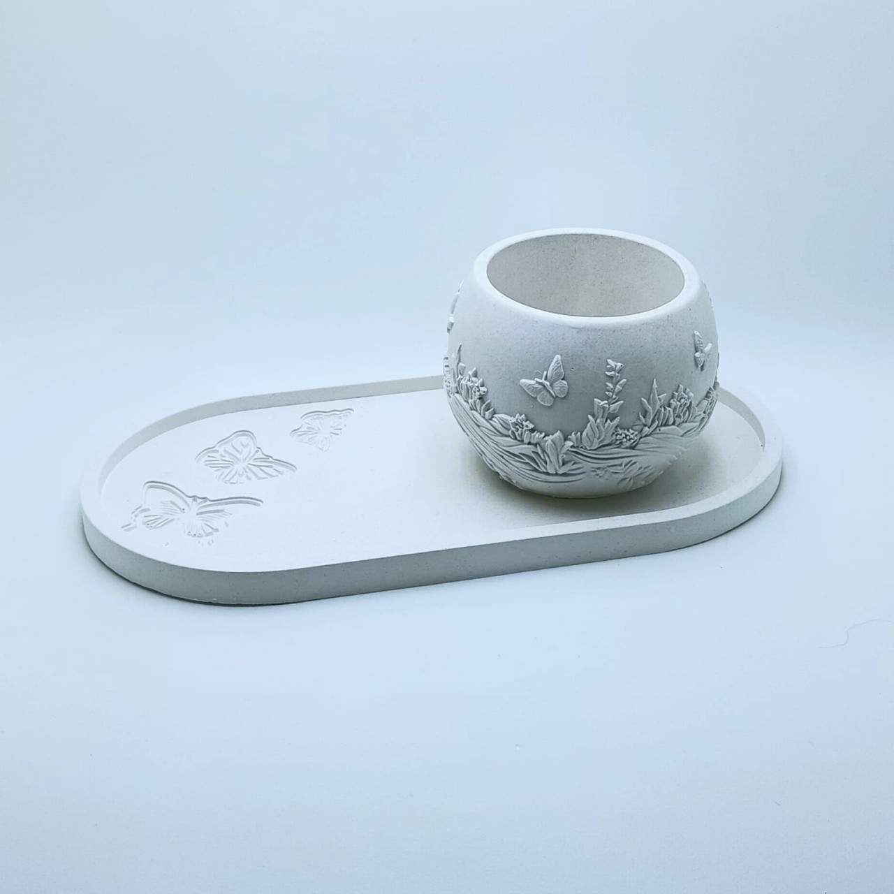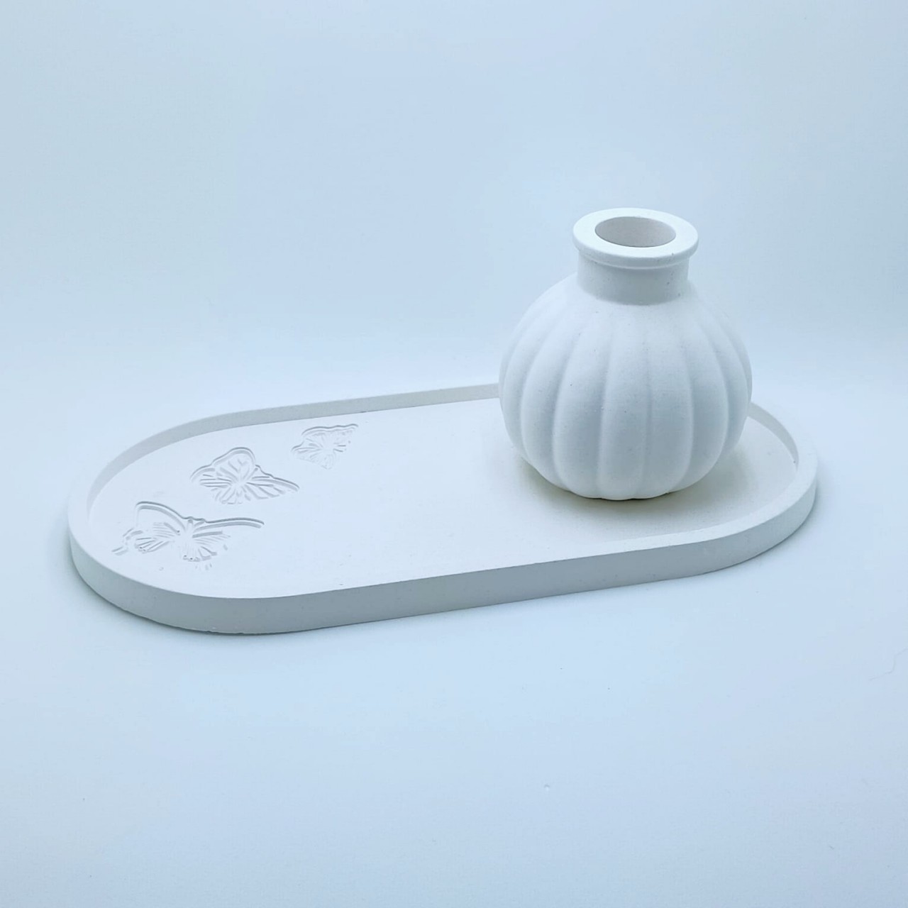 RG-46 Conjunto Decorativo + Aromatizador Aromatizadores Conjunto Decorativo: Bandeja Provençal + Vaso Canelado + Flor Aromática com Spray Elegante conjunto em gesso composto por: 1 bandeja provençal com acabamento delicado ... R$39,90