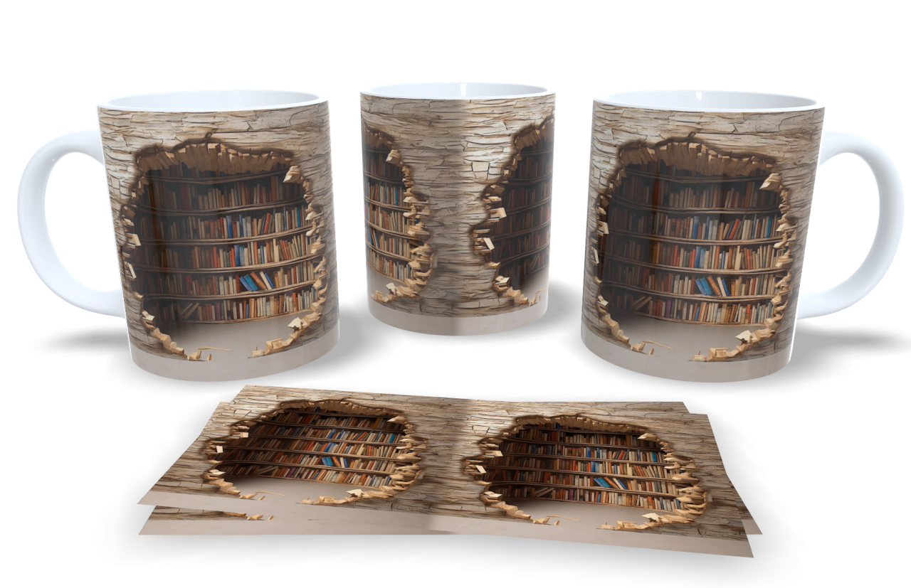 Cód. 007 Caneca de Porcelana Biblioteca 3D 3D CANECA DE PORCELANA Capacidade: 325ml R$39,00