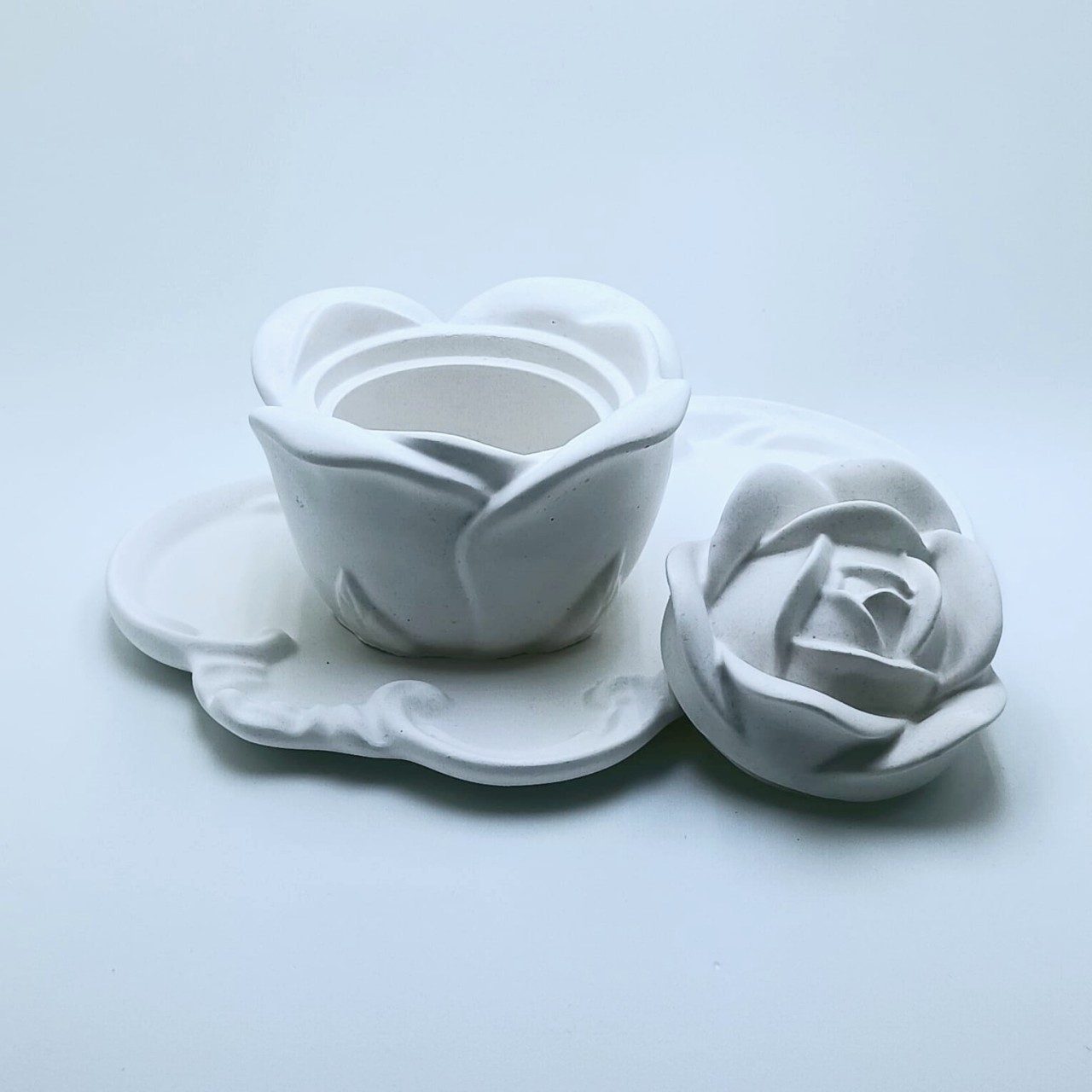 RG-32 Pote em Formato de Rosa com Tampa 15 anos Pote em Gesso em Formato de Rosa com Tampa Delicado e encantador, este potinho em gesso no formato de rosa com tampa é ideal para lembrancinhas de casamento, batizado ou aniversário. Um... R$6,90