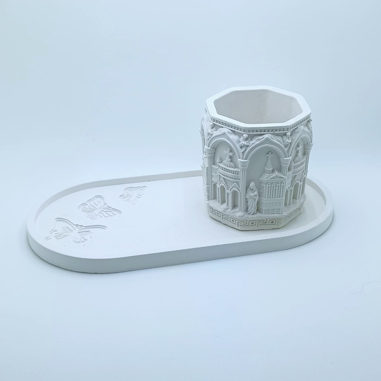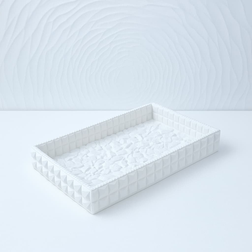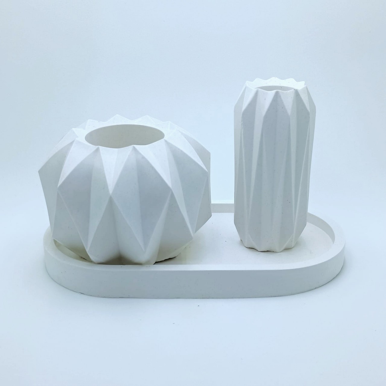 Cód. 001 Kit Bandeja Mesclada (Branco e Dourado) Pote Floral Decore Home Kit Decorativo em Concreto Branco Mesclado com Dourado Conjunto elegante e moderno, produzido artesanalmente em concreto estrutural branco com detalhes mesclados em dourado, garantindo um acabament... R$99,90