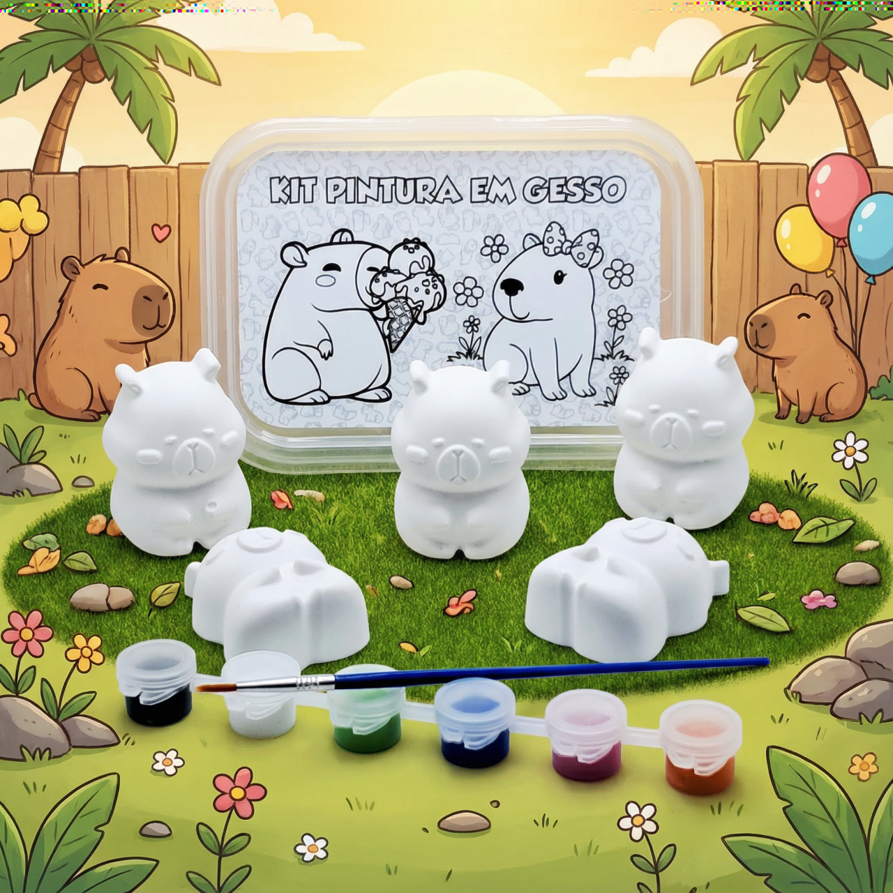 Cód. 014 Capivara - Kit Pintura em Gesso Dia das Crianças Kit Pintura em Gesso – Tema Capivara 🎨 Traga a doçura e o charme da capivara para o mundo da criatividade infantil! O Kit Pintura em Gesso – Tema Capivara é perfe... R$15,48