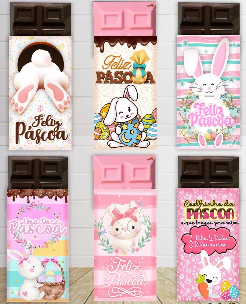PAS003 Embalagem Barras de Chocolate (6 unidades) Páscoa Kit com 6 unidades Embalagem (em pé / Vertical) Comprimento: 8,5cm Altura: 16cm Largura: 3cm ... R$33,90