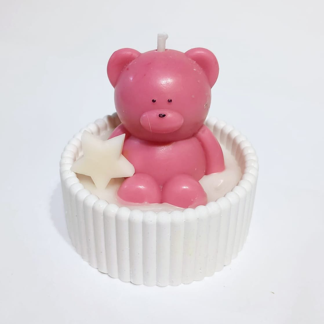Cód. 001 Lembrancinha de Maternidade (Menina) - 06 unidades Maternidade Vela Ursinho com Estrelinha no Vaso Canelado – Lembrancinha de Maternidade Uma lembrança doce e encantadora! Essa vela artesanal vem em um delicado vasinho canelado de gesso, com uma v... R$74,50
