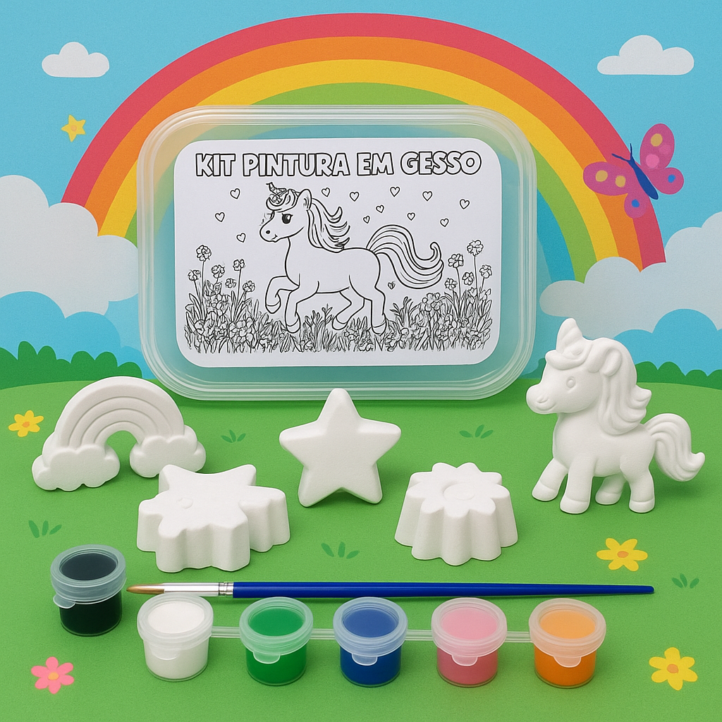 Cód. 011 Unicórnio - Kit Pintura em Gesso Dia das Crianças 🦄 Kit Pintura em Gesso – Tema Unicórnio 🌈 Encante pequenos artistas com um mundo cheio de magia, cores e imaginação! O Kit Pintura em Gesso – Tema ... R$15,48