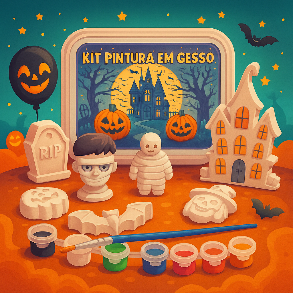 Cód. 012 Halloween - Kit Pintura em Gesso Dia das Crianças 🎃 Kit Pintura em Gesso – Tema Halloween 👻 Entre no clima das brincadeiras e fantasias com o Kit Pintura em Gesso – Tema Halloween! Uma atividade divertida, criativa e pe... R$15,48