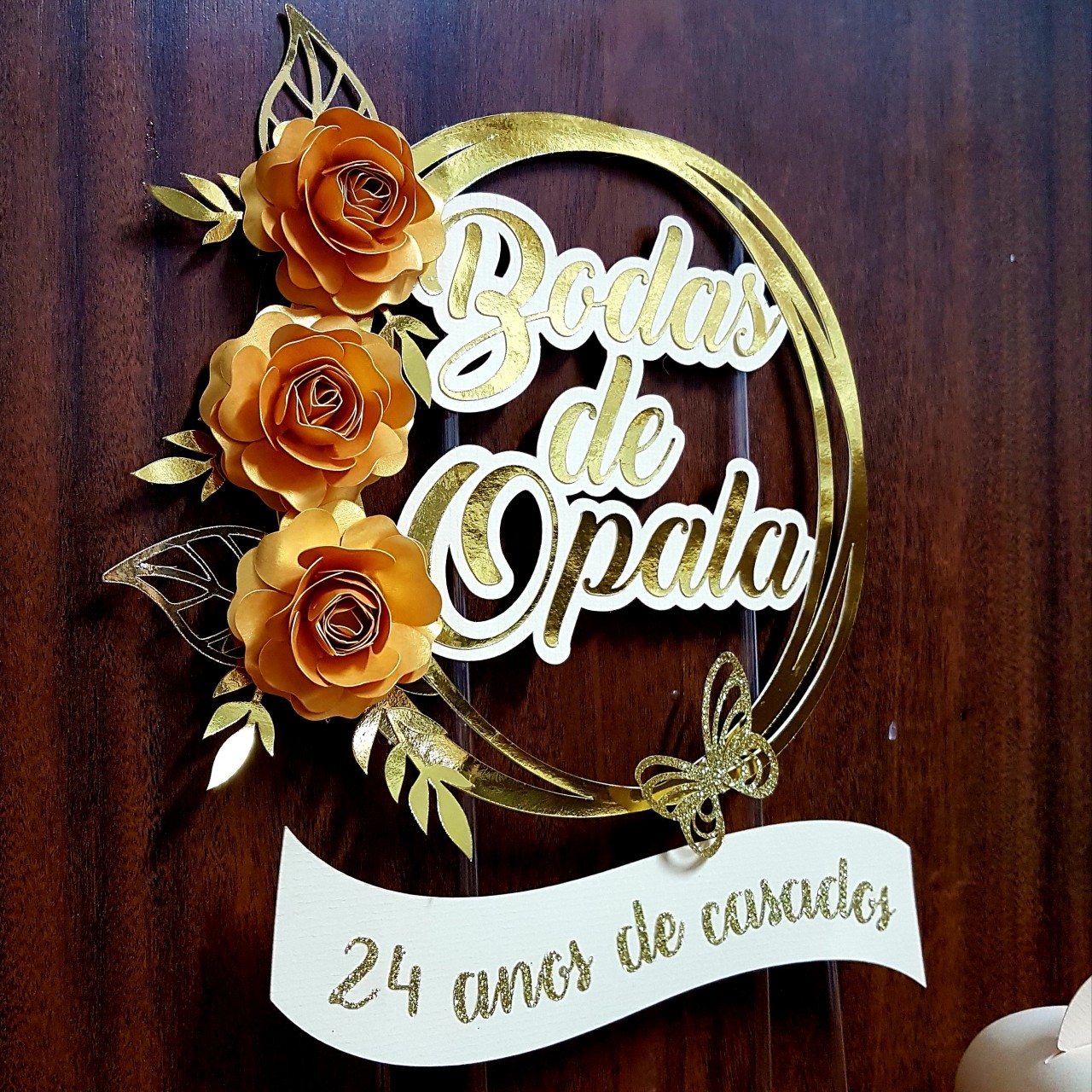 Topo Bodas de Opala Casamento Topo de Bolo Luxo BODAS DE OPALA 24 anos de casados R$49,90