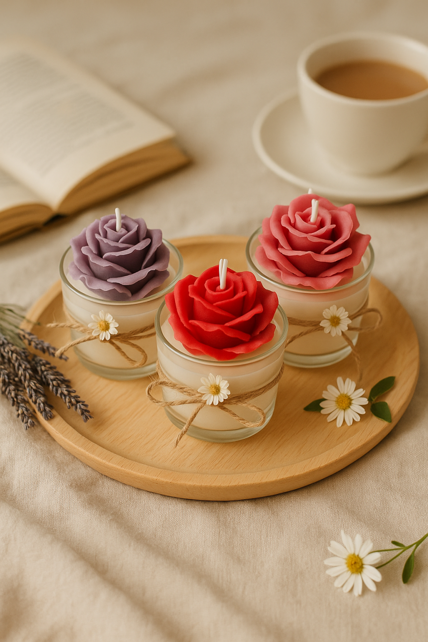 Cód. 001 Bandeja de Rosas Casamento Kit Decorativo com 3 Rosas em Vela – Elegância e Aroma para Presentear 🌹🕯️ Delicadeza que encanta! Este lindo kit contém uma bandeja retangular com cantos ... R$39,90