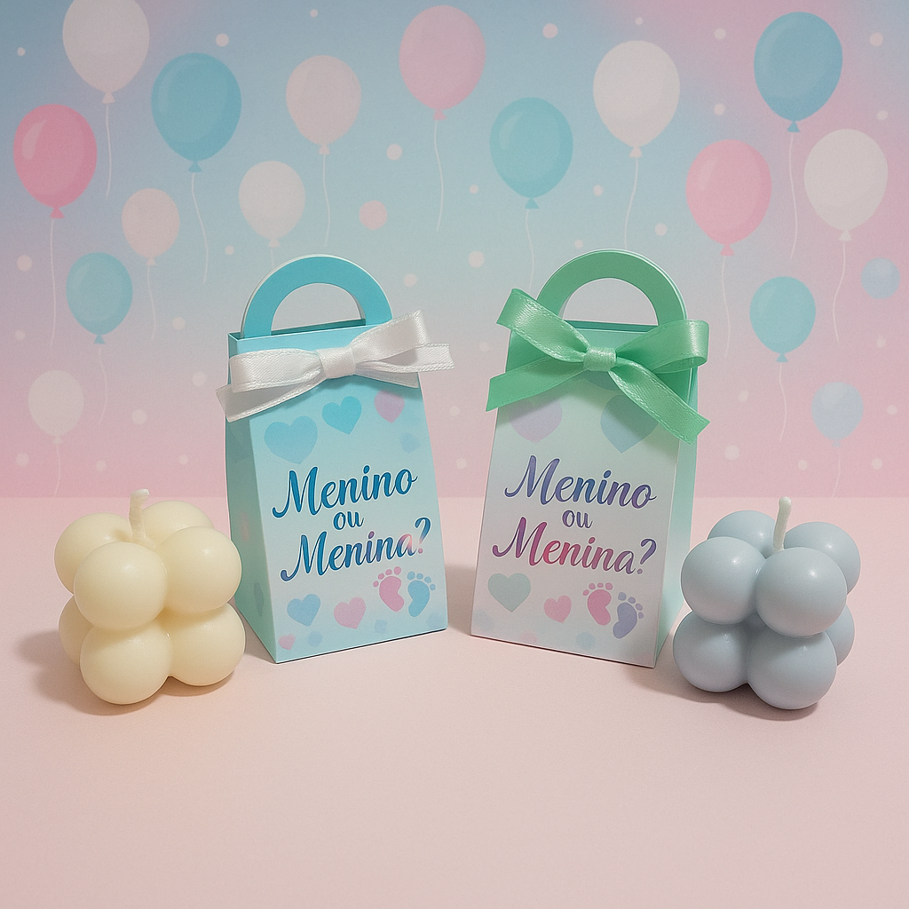 Cód. 001 Lembrancinha Chá Revelação Maternidade Vela Aromática Bubble – Lembrancinha de Maternidade Uma lembrança cheia de charme para celebrar a chegada do seu bebê! Com design moderno em formato Bubble, essa vela aro... R$8,90