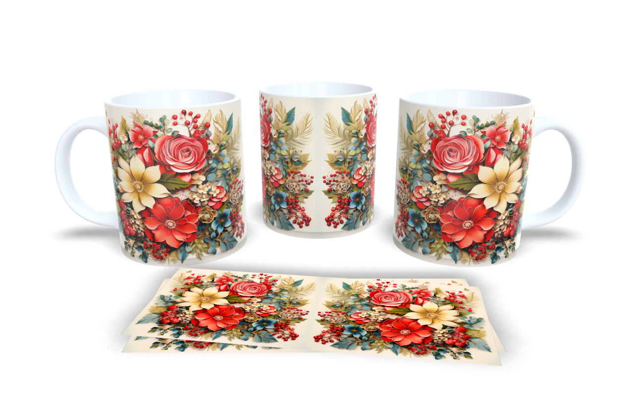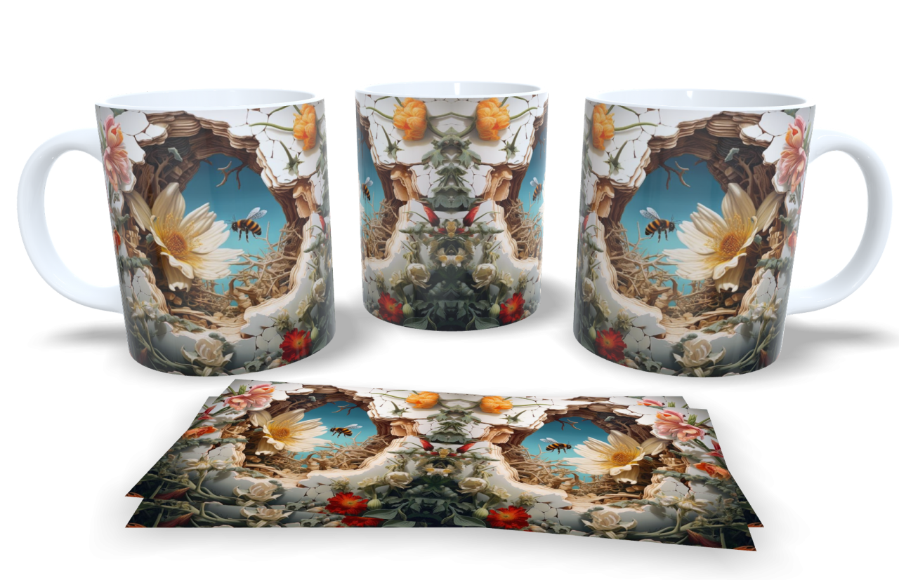 Cód. 006 Caneca 3D Floral 3D CANECA DE PORCELANA Capacidade: 325ml R$35,00