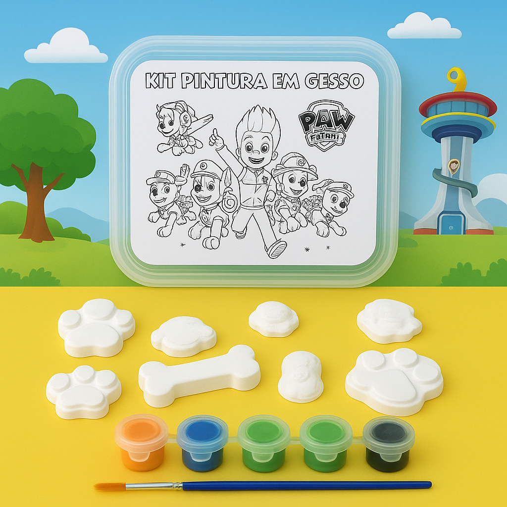 Cód. 01 Patrulha Canina - Kit Pintura em Gesso Dia das Crianças 🐾 Kit Pintura em Gesso – Tema Patrulha Canina 🐾 Diversão garantida para os pequenos fãs da Patrulha Canina! O Kit Pintura em Gesso traz personagens adorados pel... R$15,48